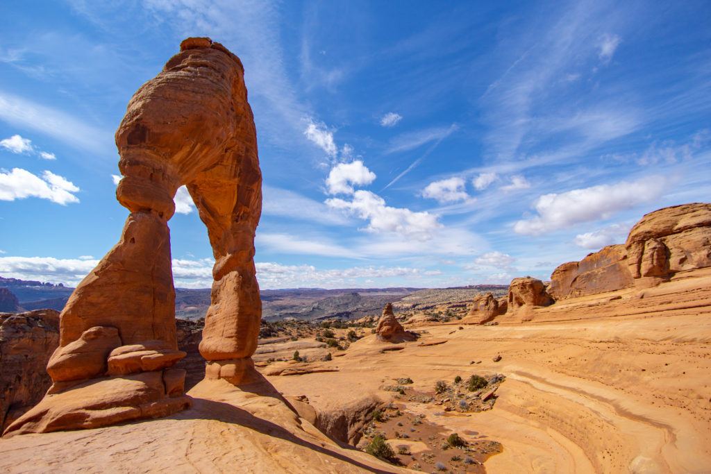 We made sandwiches at a picnic area where we could see the delicate arch wayyyy in the distance! There was no way we weren't hiking up to that thing after seeing it from far away. After a quick hike up a really cool huge slab of slickstone, the trail winds along the top of the formation. Suddenly, it turns a corner and there stands the arch! It was as beautiful as we expected it to be. It seems so improbable that such a beautiful arch would stand alone in an otherwise barren bowl, but there it was! It's no wonder this arch is so famous.
