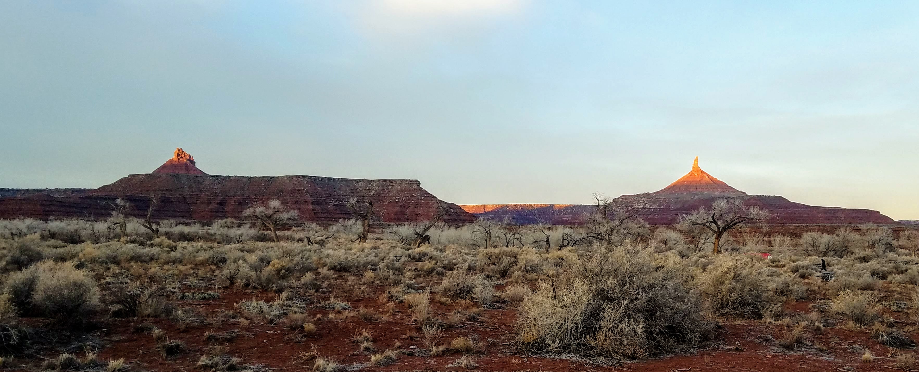 Having arrived to the campsite at night, the rising sun brought our first sight of the magical landscape. A giant sandstone finger pointing to the heavens glowed red with first light, and we watched it shrink into the horizon as we scraped frost from our windshield and headed into the park.