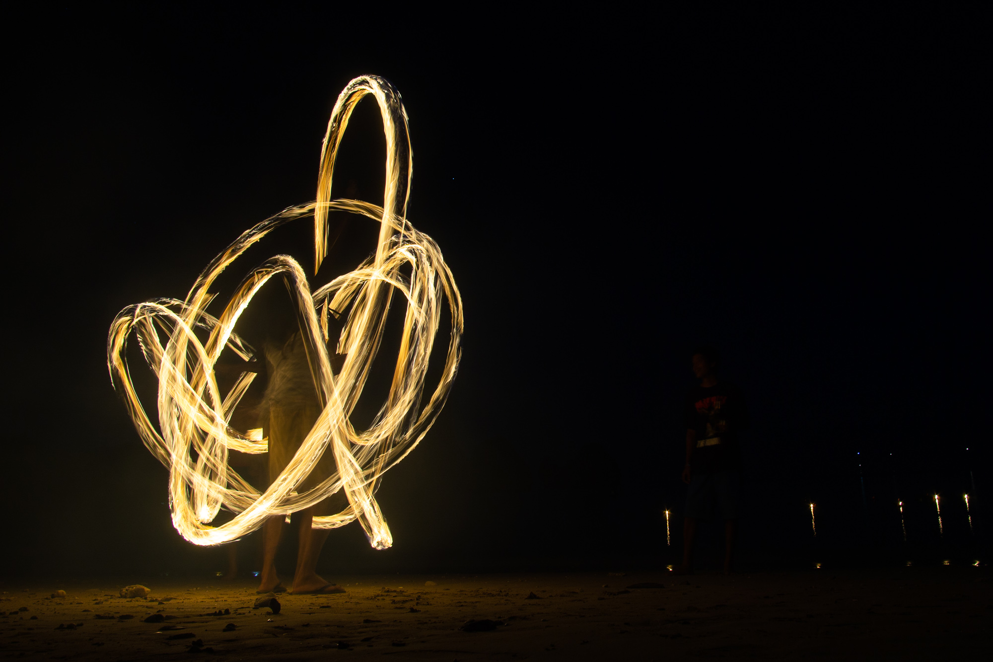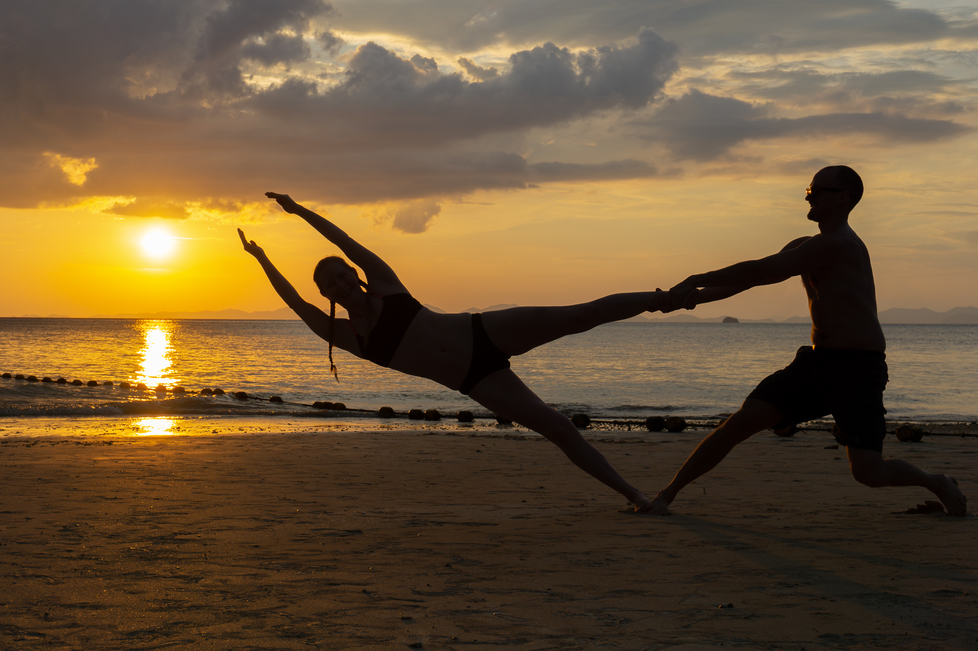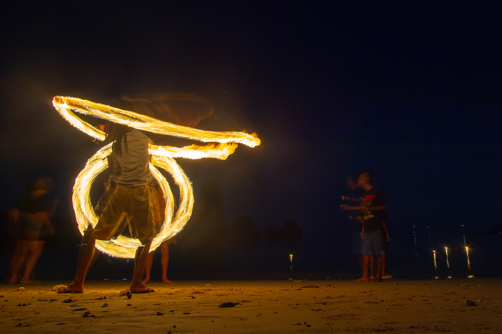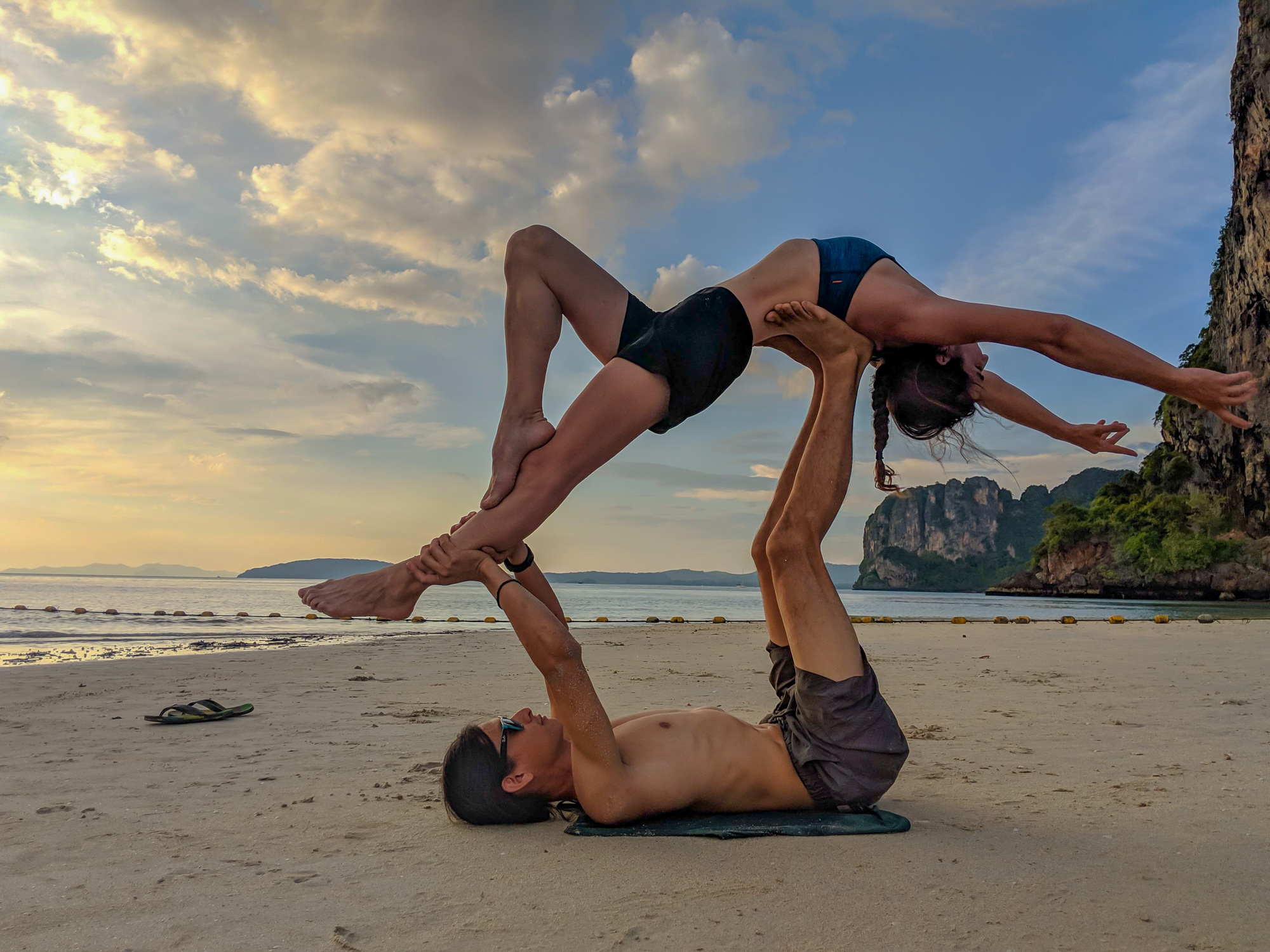 Off the wall, we practiced acro yoga on the quiet and clean Phra Nang beach. We sipped cold juice directly from coconuts. We rented kayaks and explored mini islands, secret caves, and snorkeled. We found bright corals and fish in a tiny lagoon. We crossed paths with friends we met in Vietnam! And every night, we passed out with bellies full of delicious Thai food.For Loi Krathong we released a paper lantern, filled with hot air and our wishes into the night sky. We joined a little party of climbers and locals celebrating the full moon on the beach under the stars. As krathong were floated into the bay, a local guy and Julie took turns spinning fire poi, mesmerizing us in a way only fire can.