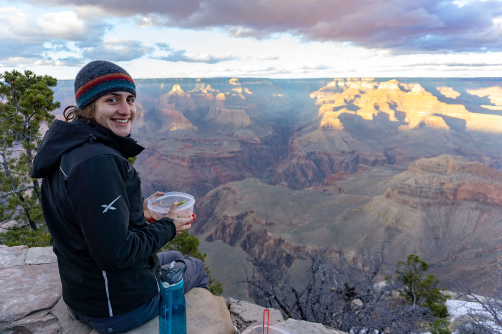 After our hike, we drove the rim, taking in the other views. Then we took our dinner to a nice viewpoint and enjoyed the show as the sun set. The dramatic sky and colors with the massive canyon as the backdrop made for one of our favorite sunsets ever!
