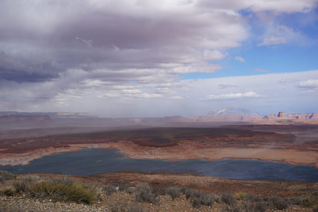 We decided we could squeeze in another park on the way home before heading to Texas to visit Mel's family, so we headed Northwest to Zion. On the way, we checked out the super famous bend in the Colorado River near Page, AZ. The wind was nuts, and we were getting sandblasted so we didn't stay long. Still, it was beautiful and worth checking out. On our way out we parked at an overlook and watched a storm roll in. It reminded me of the storm we watched in Paklenica, but with a more western backdrop.