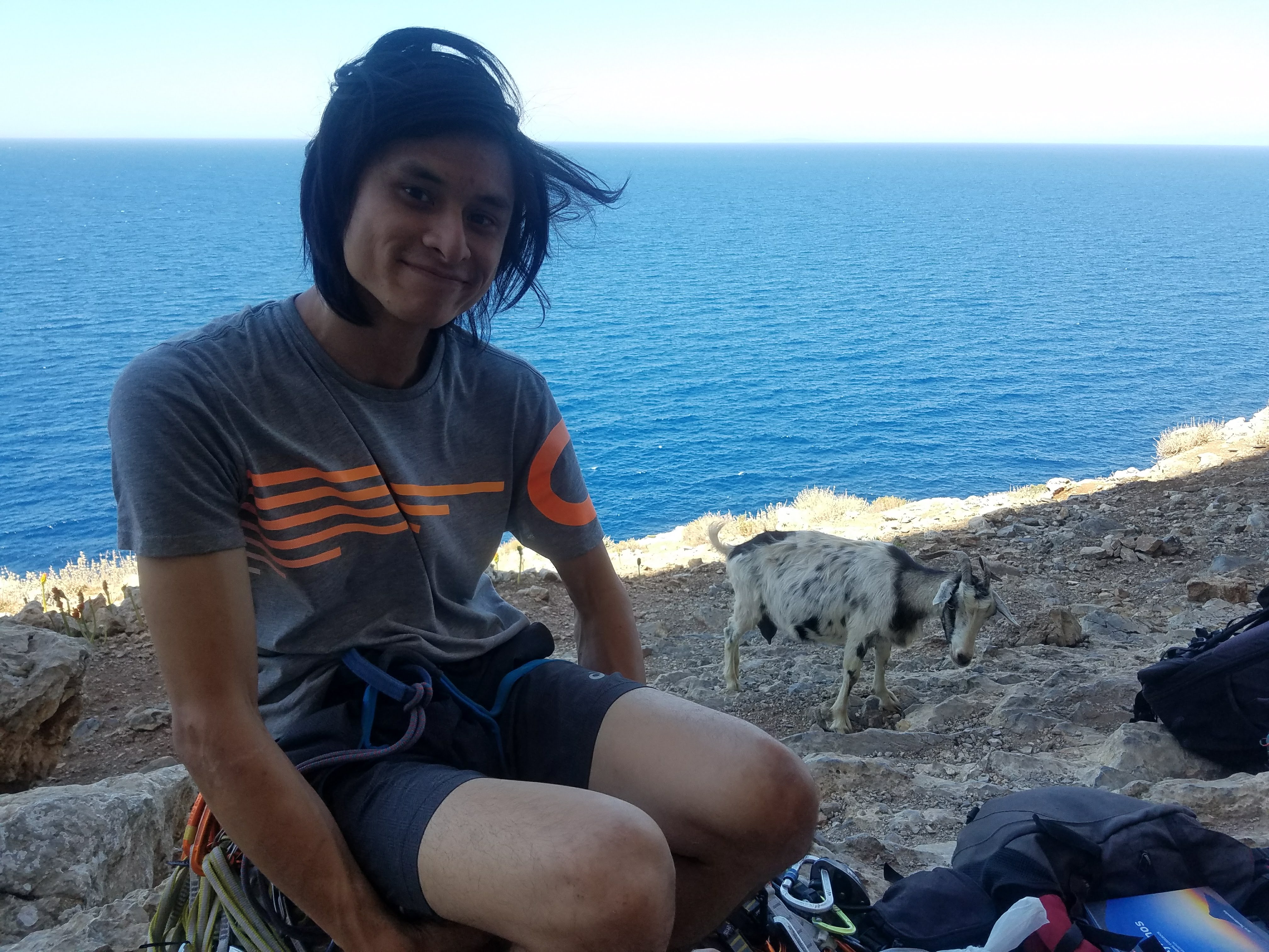 The climbing surpassed our expectations - nearly every route we got on was an incredible classic. There are over 3000 routes on the island with a large variety of styles, but the most memorable were climbs on huge tufas. Each cliff had a beautiful view of the sea and nearby islands, a perfect island breeze that brought the scent of local herbs, and often curious goats hoping for careless climbers to abandon packed lunches.